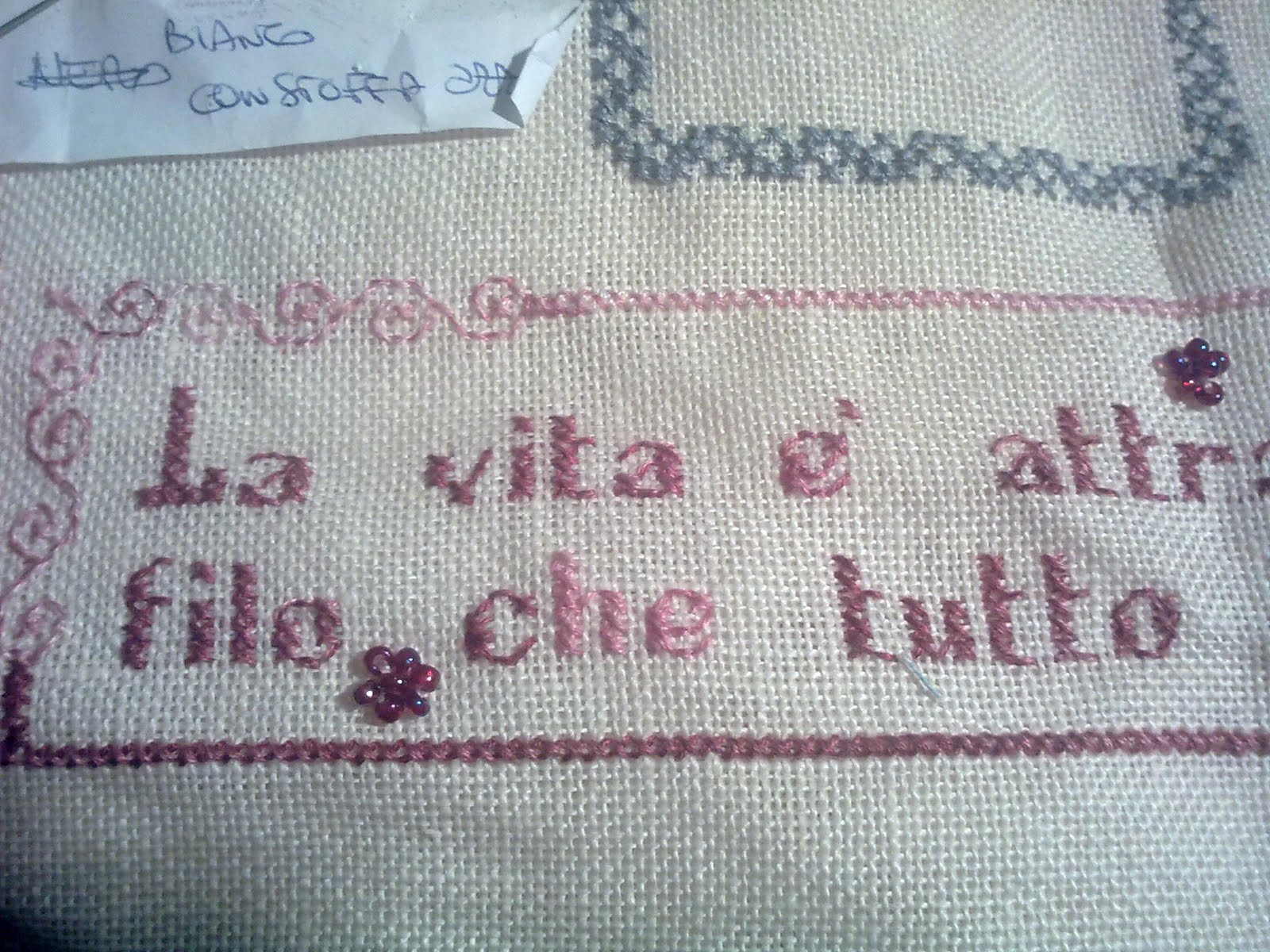 Che bello il tuo ricamo!! Mi piuace moltissimo il filo con il fiocco!!..